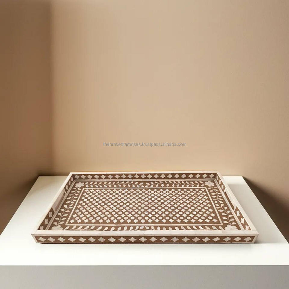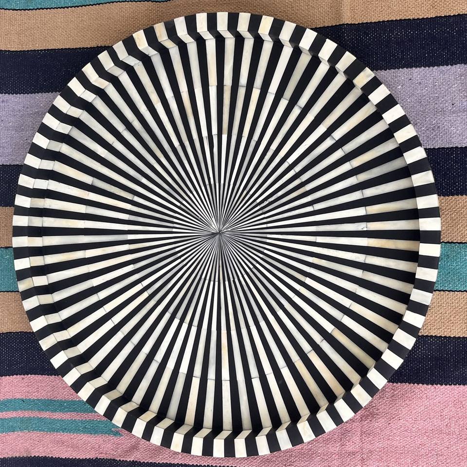 Luxury decorative bone inlay tray supplier,Black and white bone inlay stripe tray, Buffalo bone inlay storage tray for homedecor