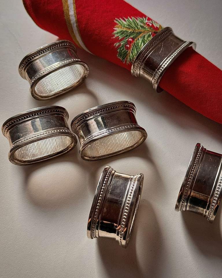 Luxury decorative silver metal napkin ring set for banquets weddings parties hotels and elegant dining table arrangements