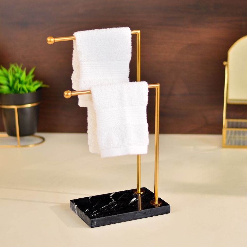 Luxury freestanding marble and metal towel stand bathroom rack with decorative finish for modern interior decoration