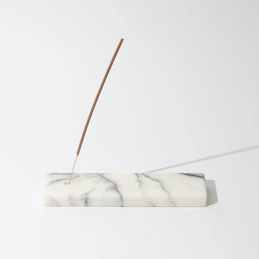 Luxury handmade white marble rectangular incense holder with gold accent modern decorative stone stick burner tray for home spa