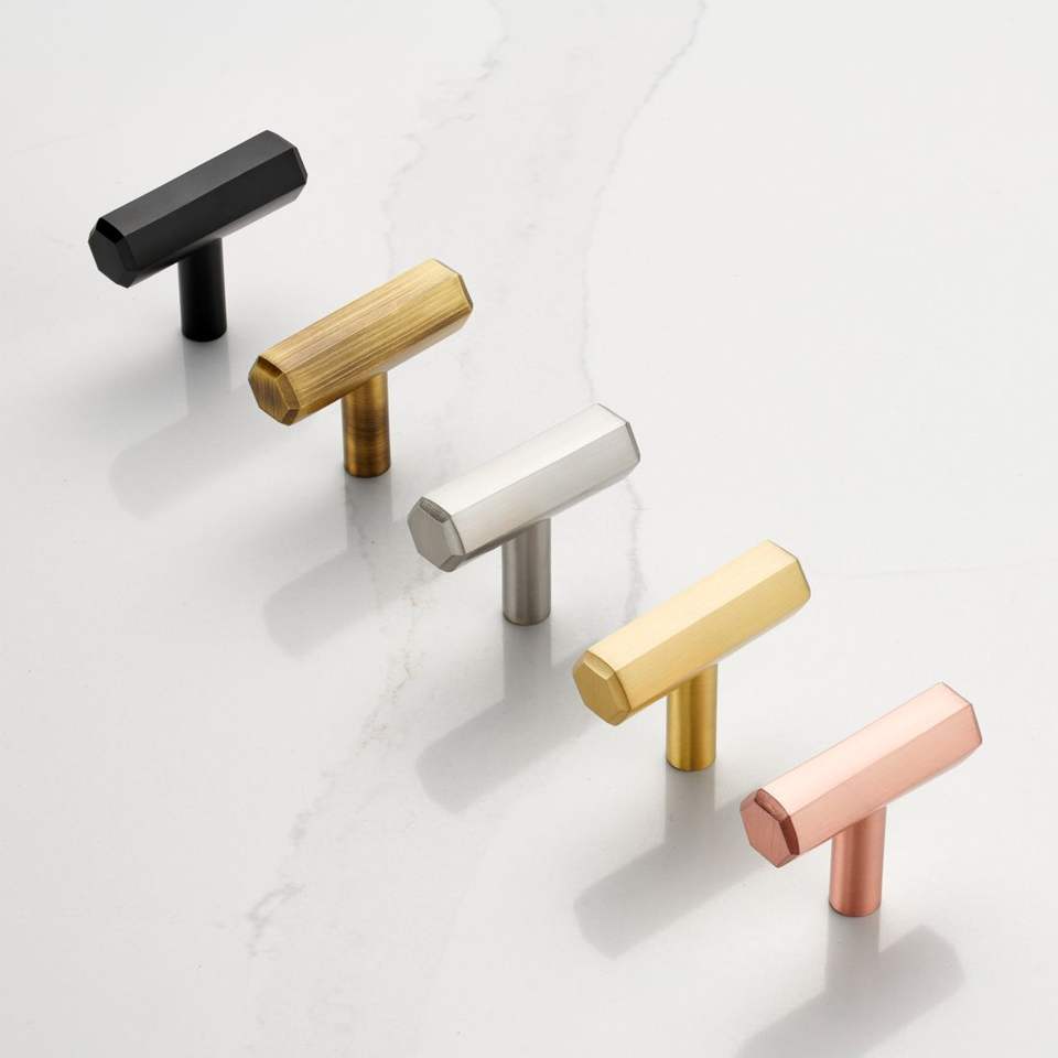 Luxury hexagonal T bar solid brass door knobs for home dresser door cabinet furniture decorative kitchen wardrobe handle knobs