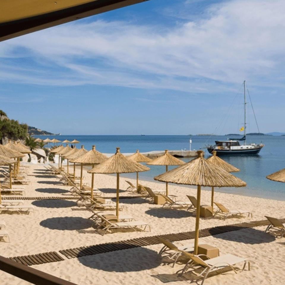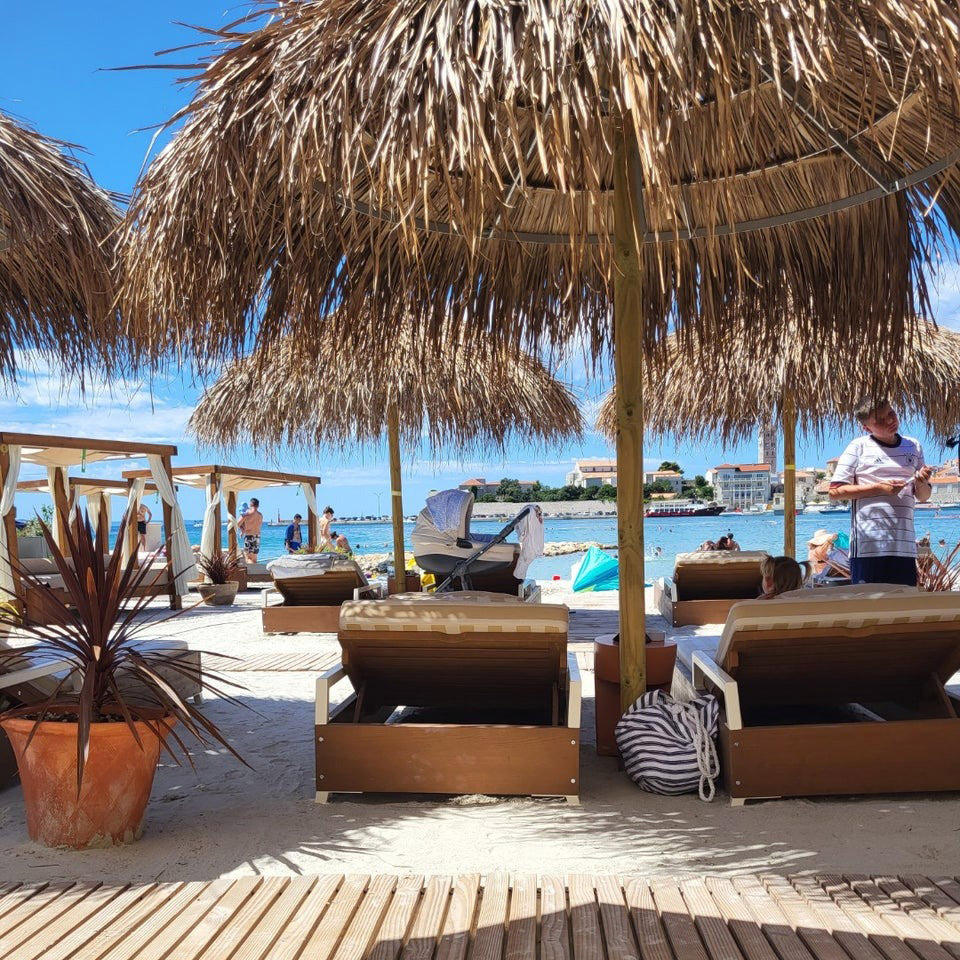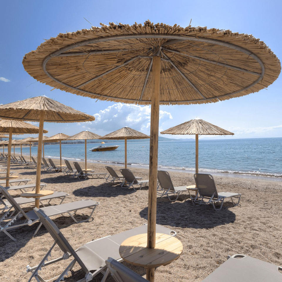 Luxury hotel resort sunshade umbrellas natural bamboo canopy leaf palm thatch parasol beach umbrella