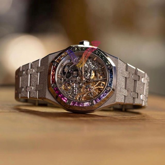 Luxury Unisex Men's Moissanite Diamond Watch Rubber Band White Gold Case 5BAR Water Resistant Mechanical Movement Hip Hop Style