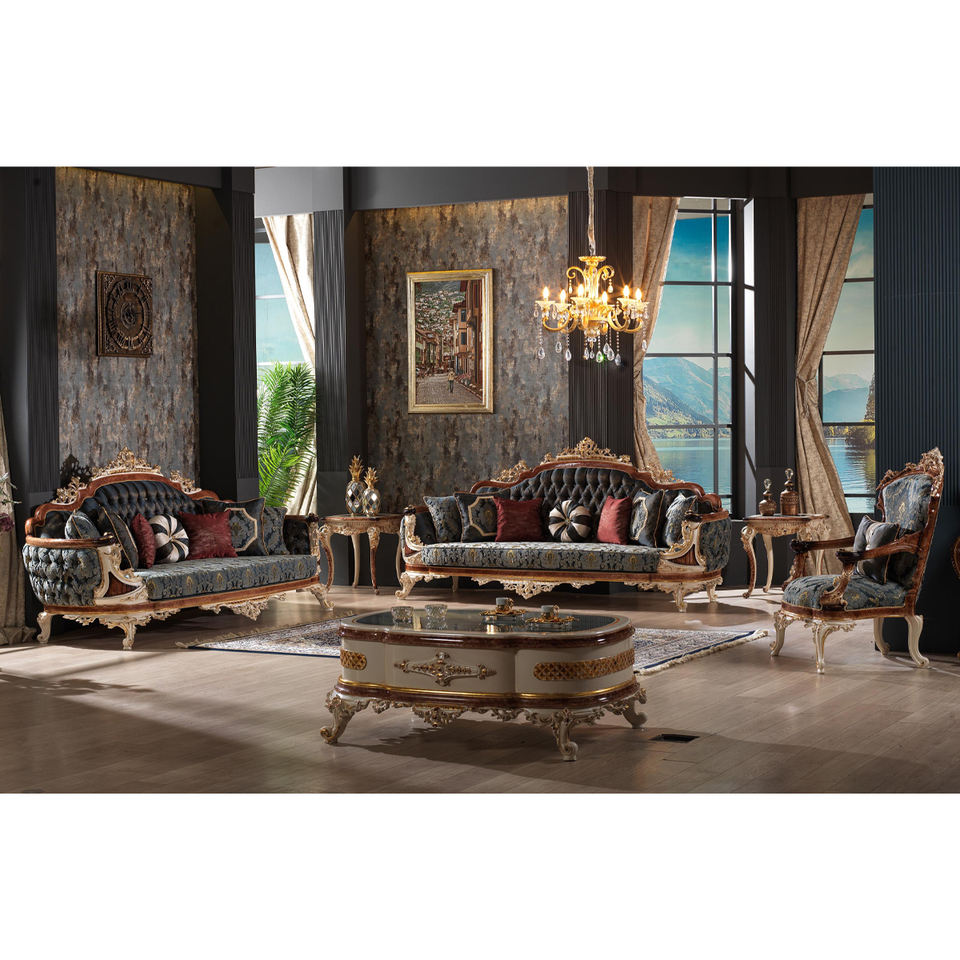 Luxury Living Room Furniture Sofa Factory Provided Living Room Sofas Fabric Sofa Antique Classic Style Wooden