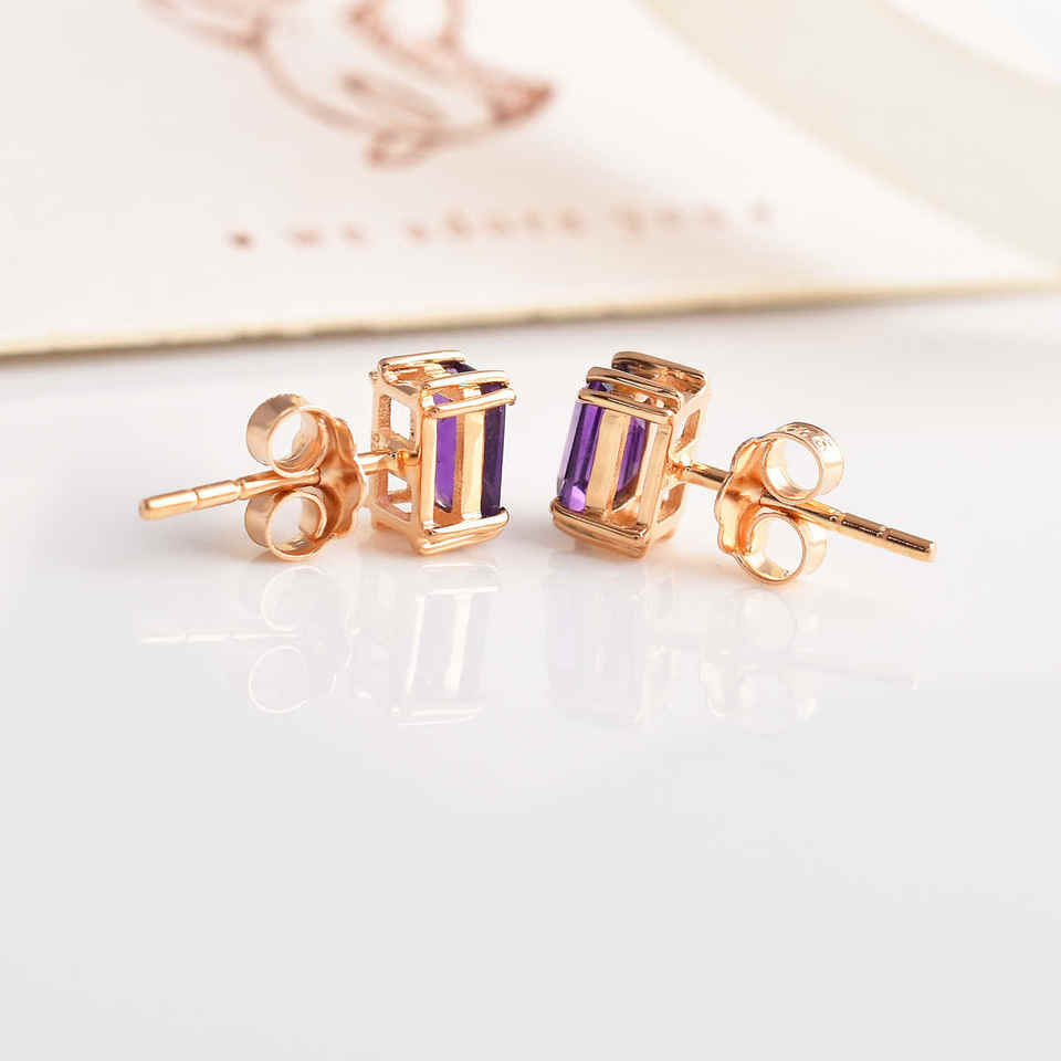 Luxury Classic Gold-Silver-Plated Stud Earrings Rhodium-Plated Natural Amethyst Topaz Emerald Cut Diamond for Parties