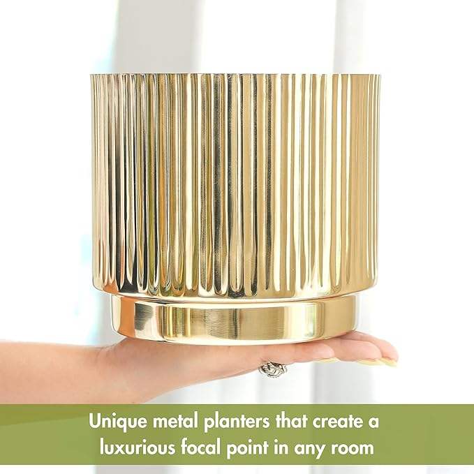 Luxury polished metal planter stand offering stylish height to decorative plants enhancing elegant interiors