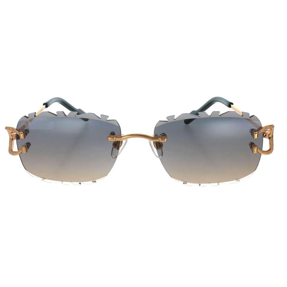 Luxury rimless square sunglasses with gray gradient lenses and gold metal temples for men and women women