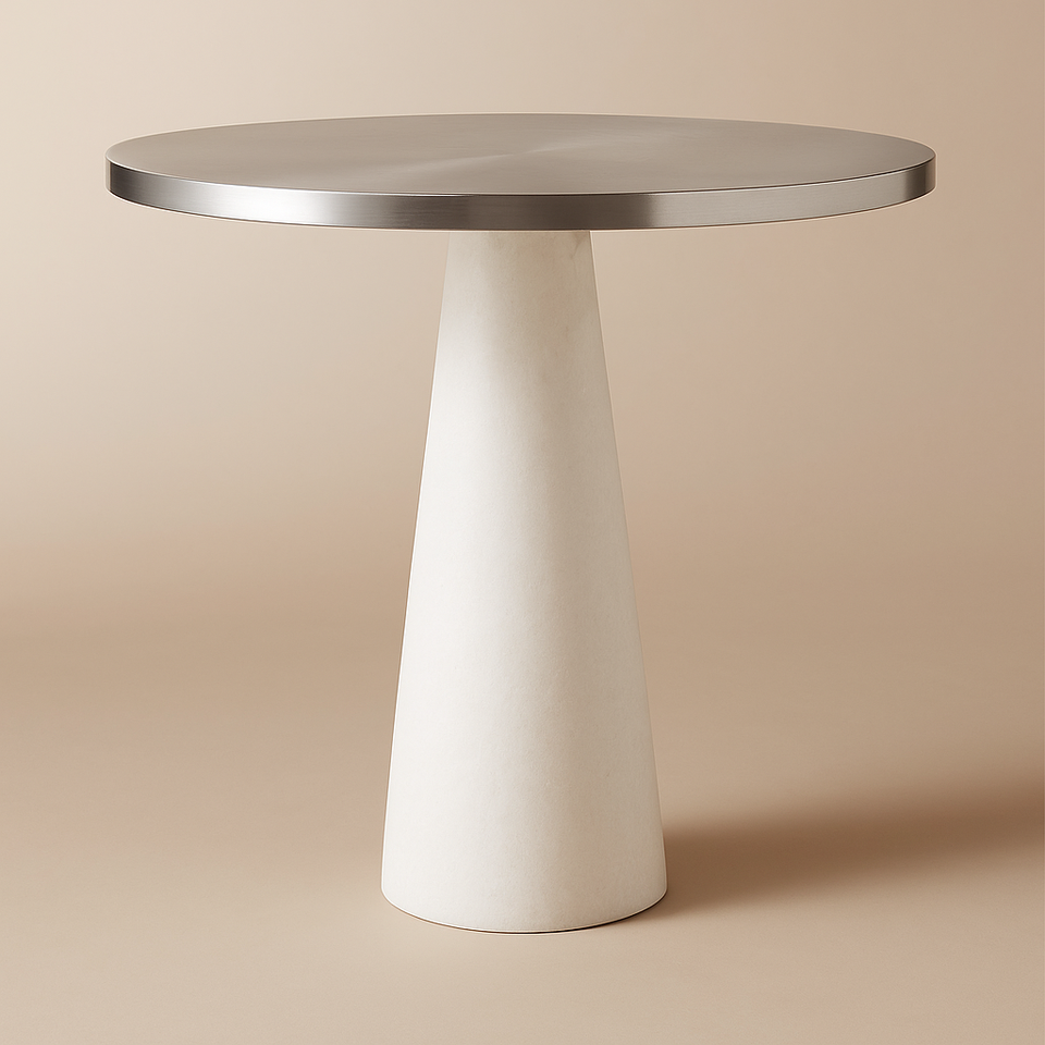 Luxury round pedestal table with stainless steel top and solid white marble base modern dining or accent furniture for elegant