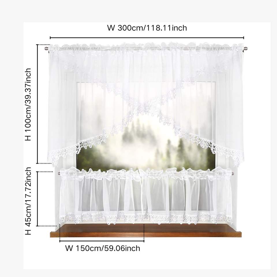 Luxury series solid color transparent tulle curtain 3 pieces 300 * 100cm for bedroom, kitchen, living room, wedding decoration