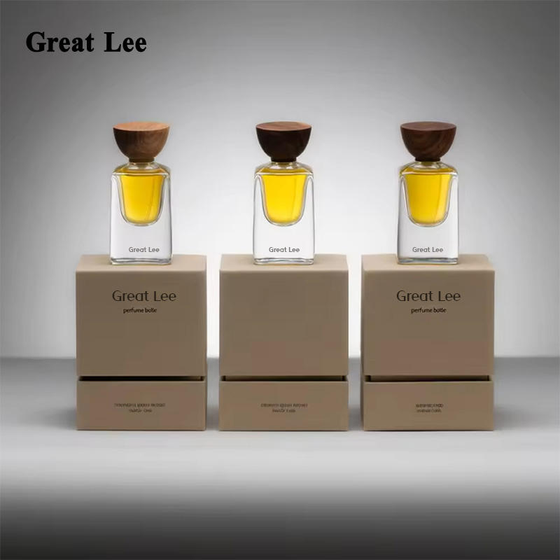 Luxury square Perfume Glass Bottle Empty clear Perfume Bottle 30ml 50ml with Wooden Cap for Men