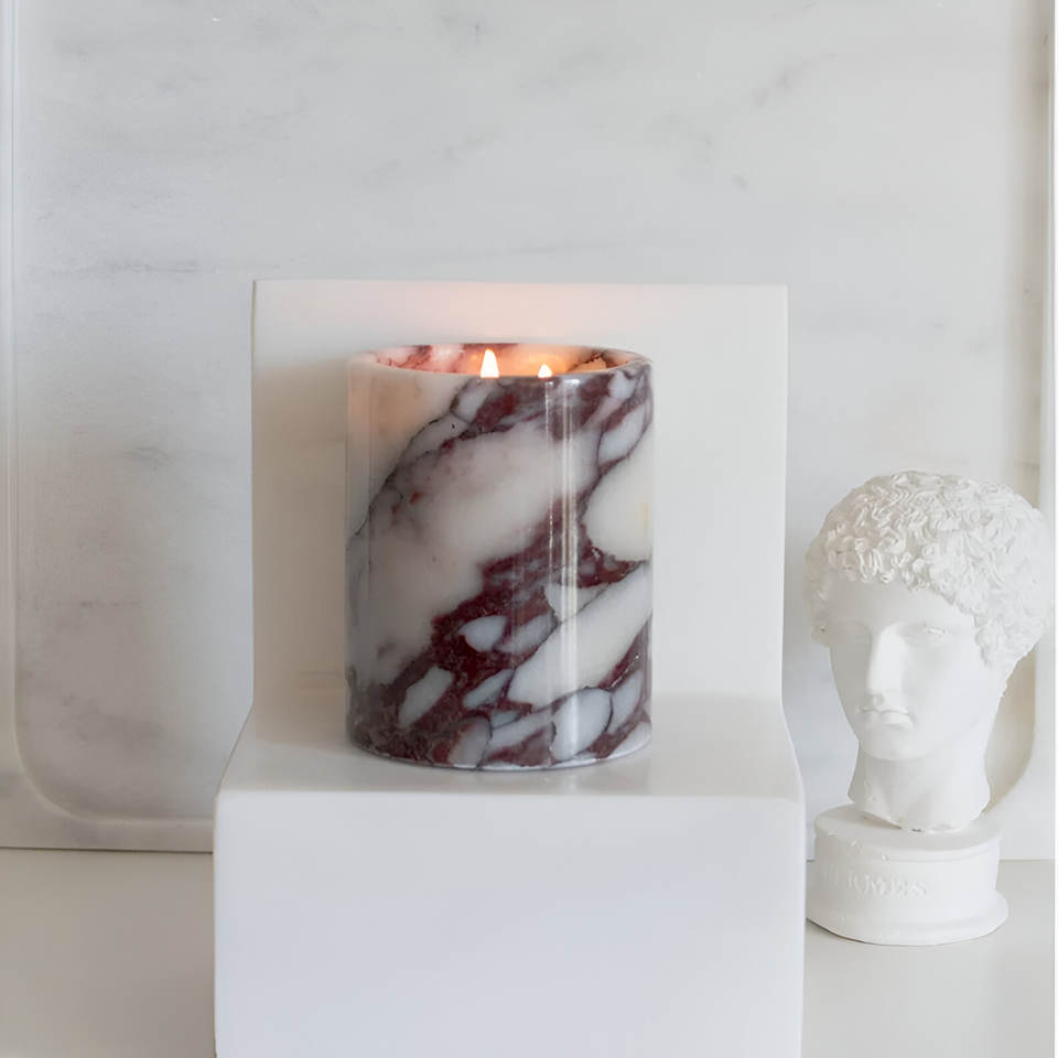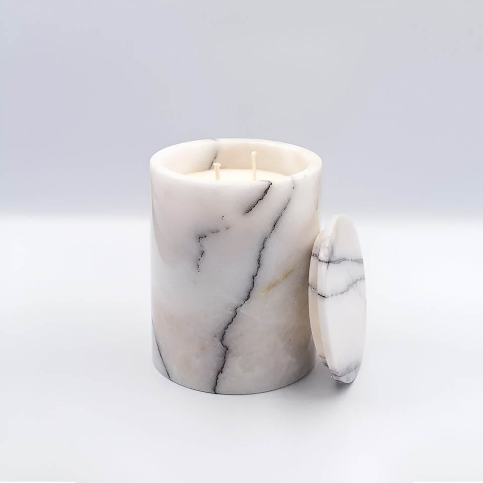 Luxury Style Large White Onyx Marble Candle Jar With Lid White Marble Candle Jars Festive Christmas Pillar