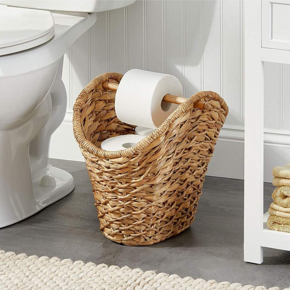 Luxury style water hyacinth paper holder with dowel rod for toilet paper rolls best choice restroom decoration
