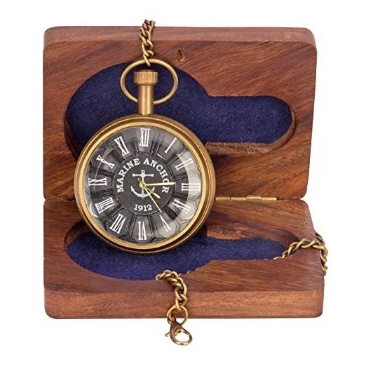 Luxury unique color dial Brass pocket watch wooden box customizable chain custom marine anchor best man wedding promotion gift
