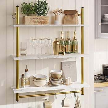 Luxury wall mounted brass shelves racks for bathroom storage with elegant golden finished durable design