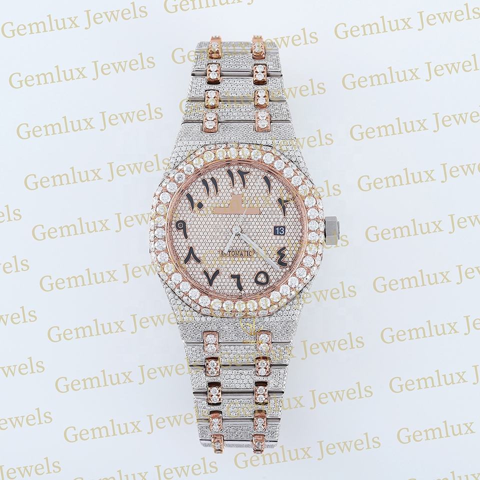 Luxury wear Pass Diamond Tester Arabic Dial D VVS Fully Iced Out Moissanite Diamond Rose Gold Two Tone Hip Hop Watch For Men