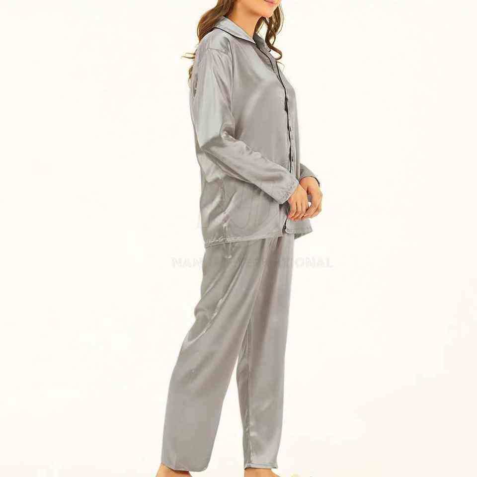 Luxury womens sleepwear set designed with satin fabric tailored fit and elegant detailing for modern stylish nightwear