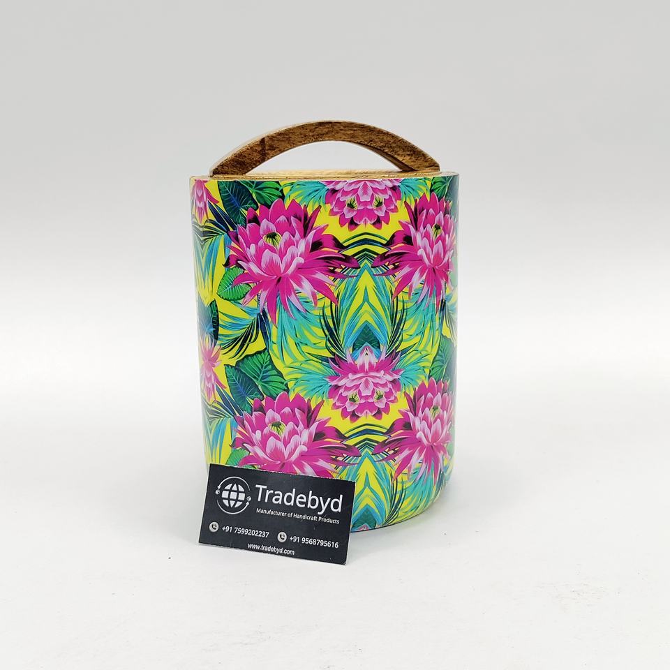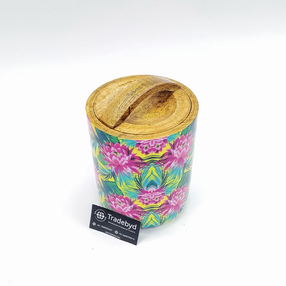 Luxury wooden enamel printed dry fruit jar with curve handle for stylish storage tradebyd