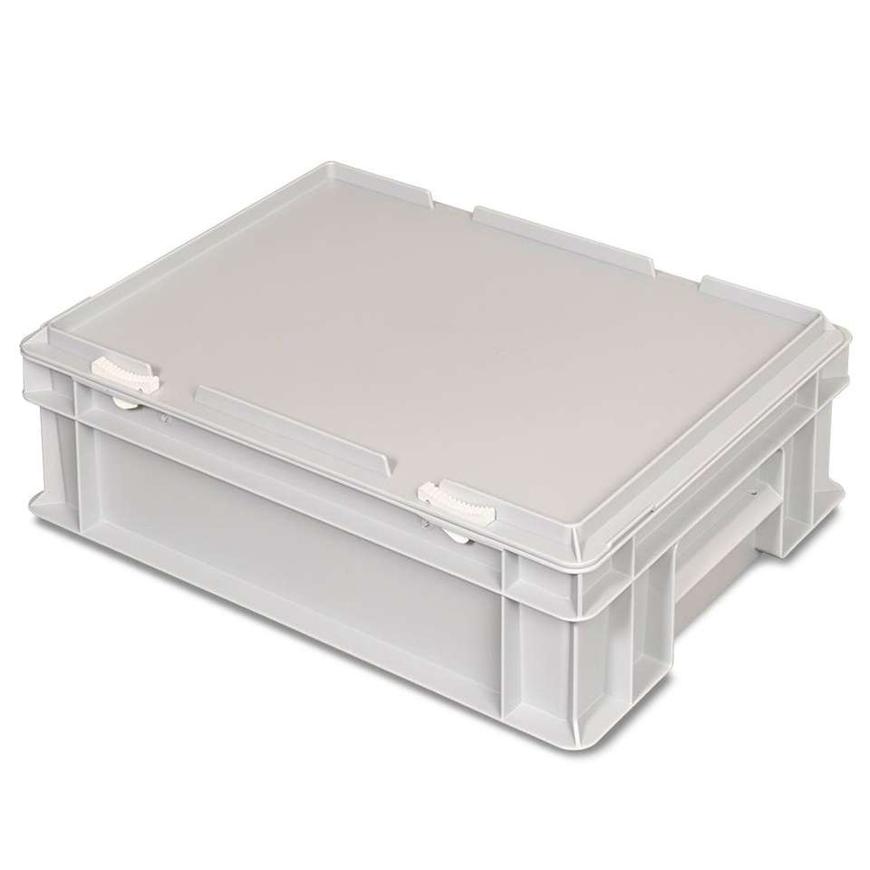 LxWxH 400x300x130 mm impact-resistant polypropylene plastic grey color Euro lid container with 4 insert boxes tool storage case