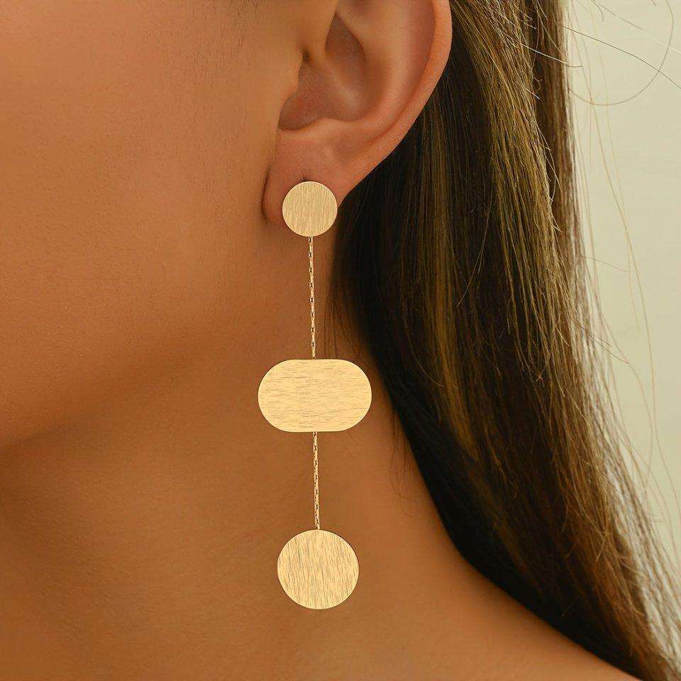 Lxalry Geometric Luxe Drop Earrings Minimalist Chic Gold-Tone Jewelry Tactile Detailing Handcrafted Hypoallergenic Evening