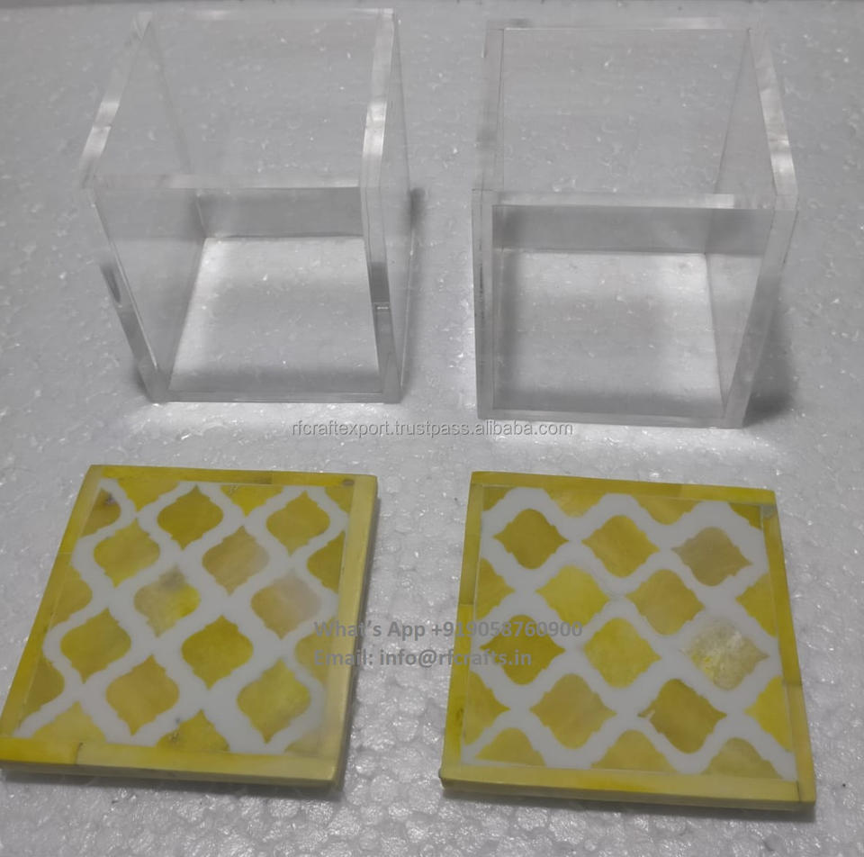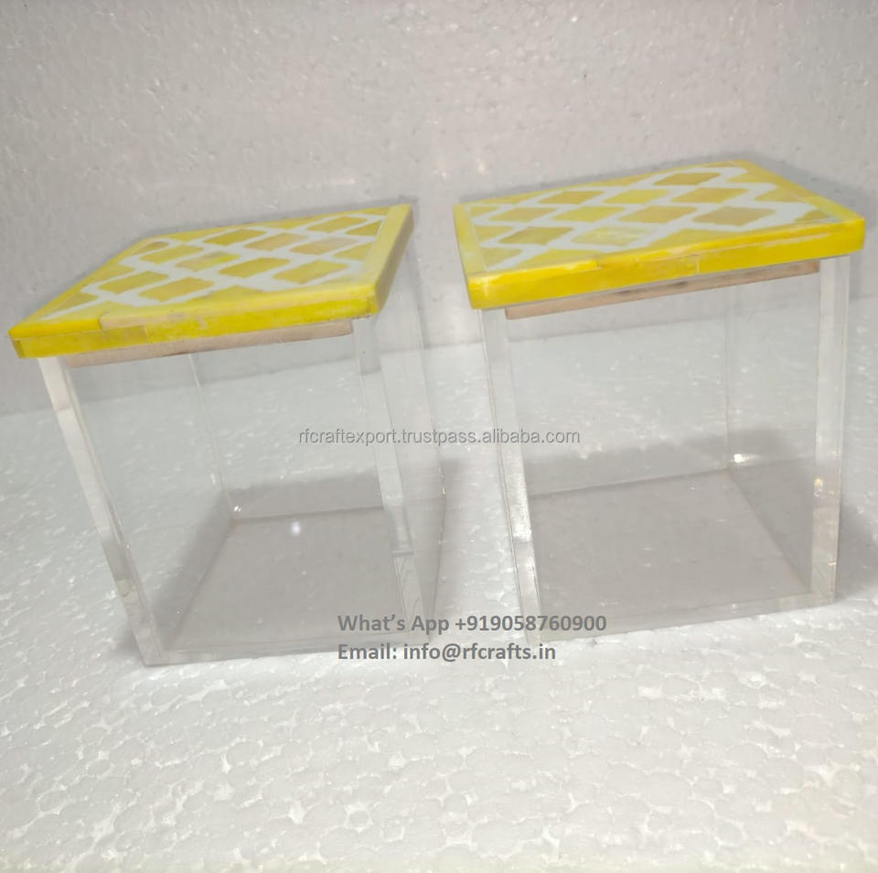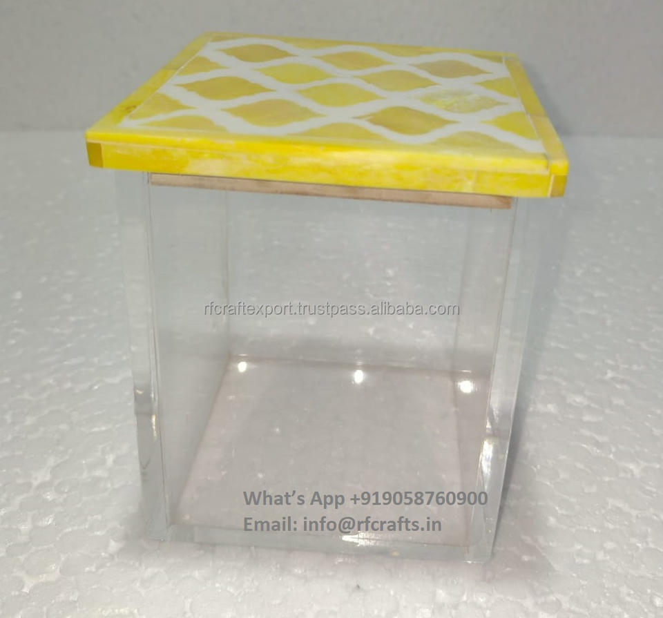 Luxury Acrylic Wooden Mop Work Container Modern Plant Yellow Morocon Dessert Container Acrylic Lid Different Sizes for Weddings