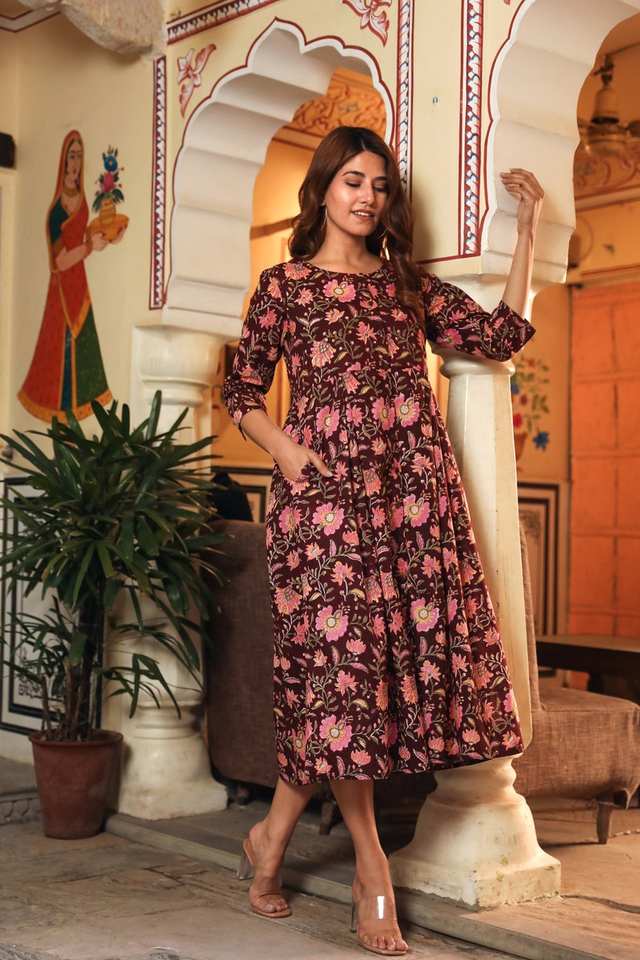 Lyanna Button Down Dress Pure Cotton Hand Block Printed Bohemian Summer Dress Maroon Pink Ethical Handmade Fashion