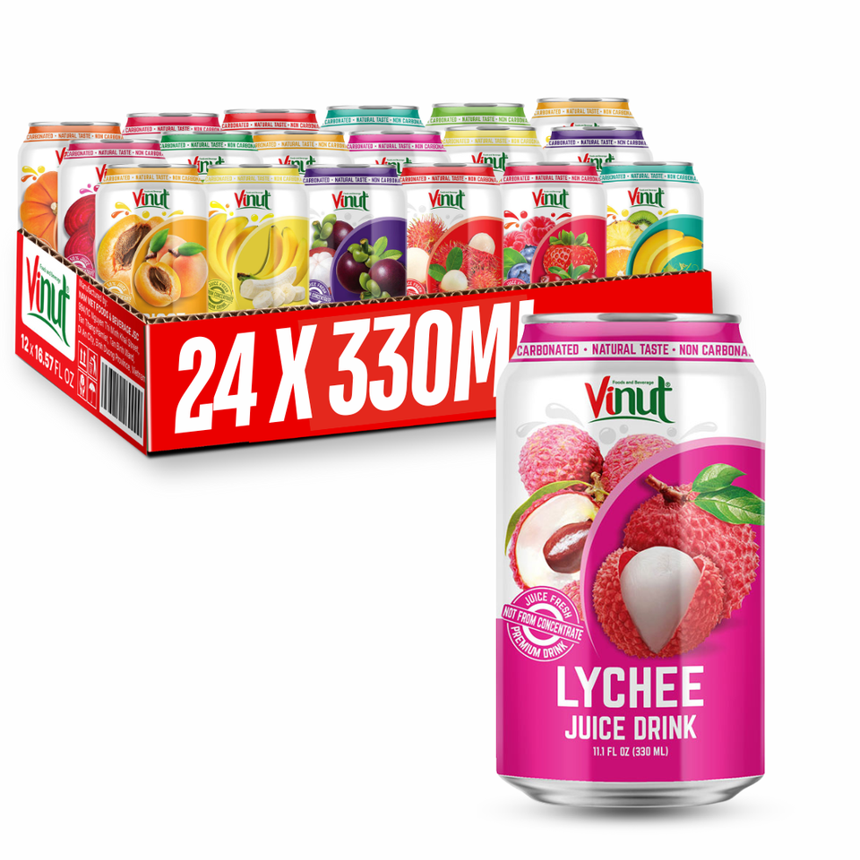 Lychee 330ml Juice Drink Vietnam 24 cans carton can Sugar Free OEM ODM Private Label Free Sample Flavored Beverage