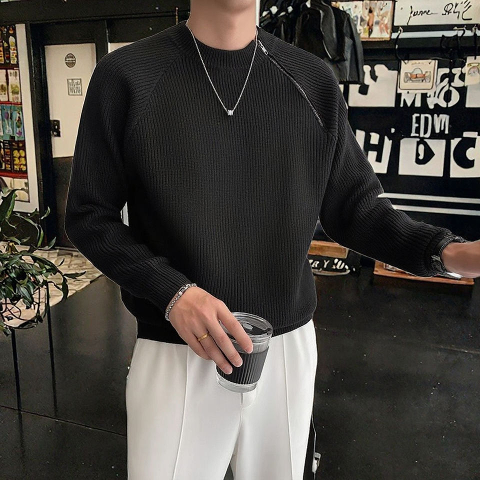 M-3XL Men's Fashionable Winter Top High-End Casual Crew Neck Pullover Sweater Solid Color Zip-Up Lightweight Design High-End