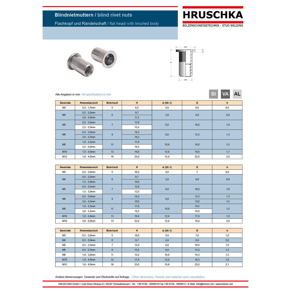 M 4x20 Stainless Steel Blind Nut with Flat Head and Knurled Shaft Rivets KLB 0.5-2.0