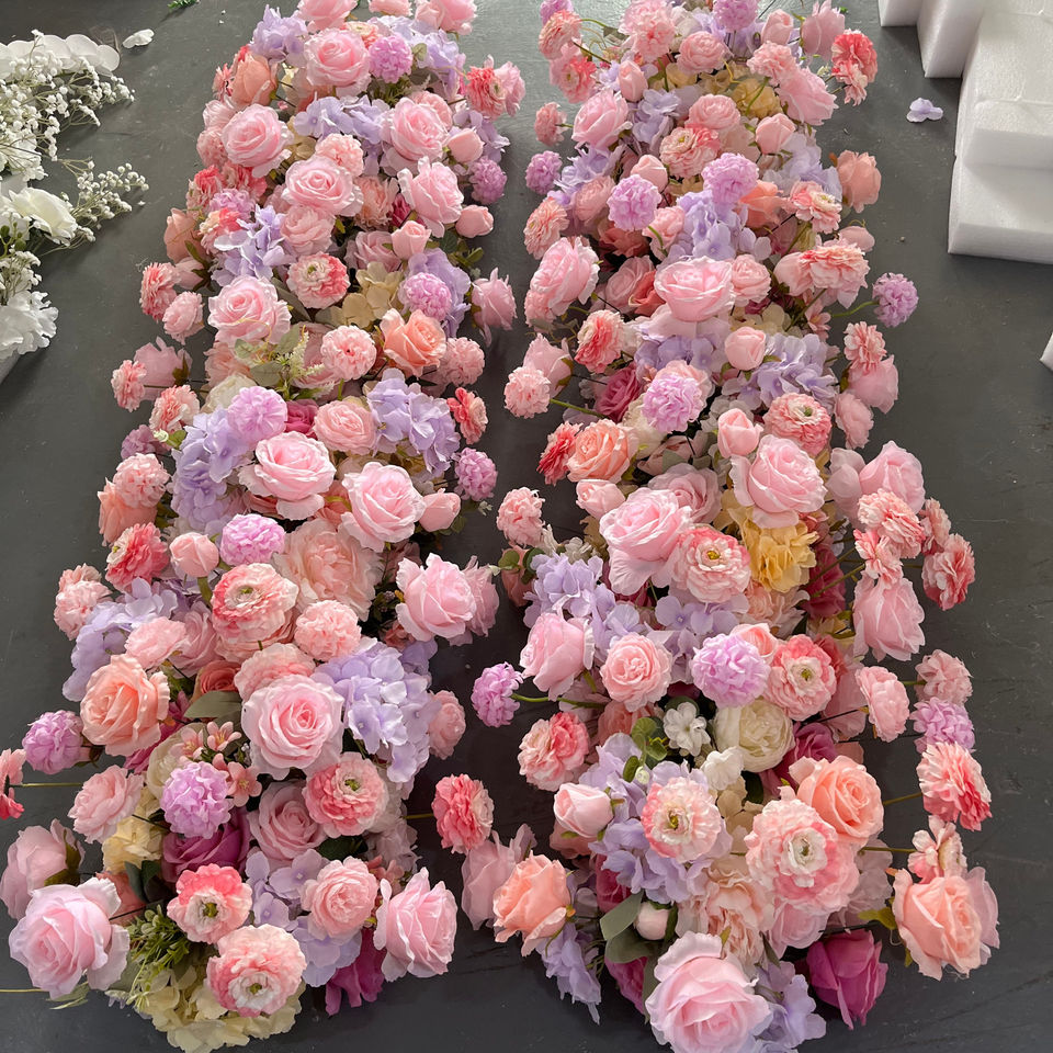 M-FR018 Hot Sale silk rose artificial flower runner 200 cm flower fabric runner aisle flower runner for wedding silk arrangement