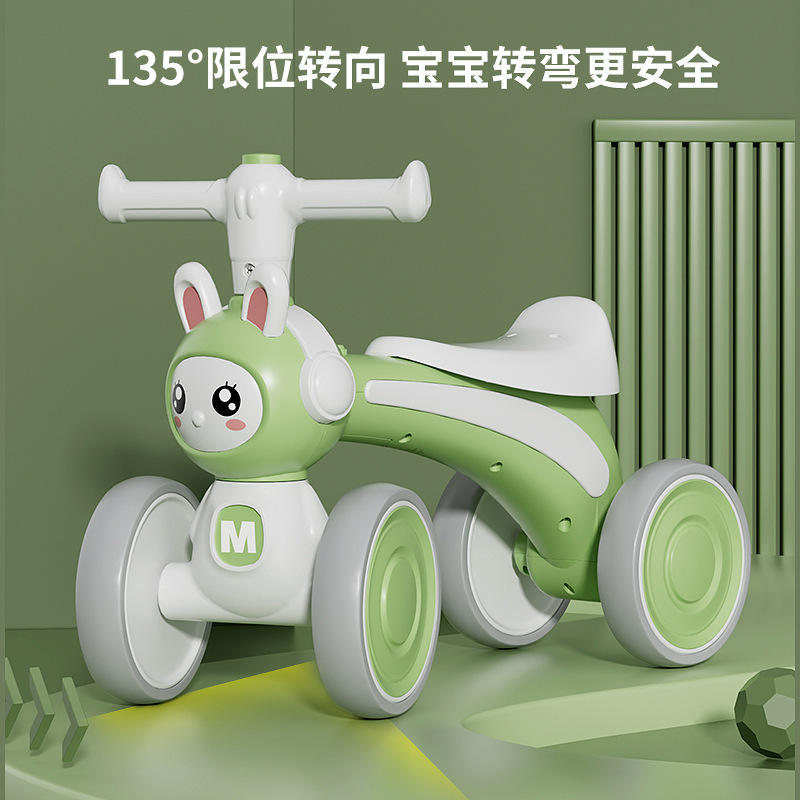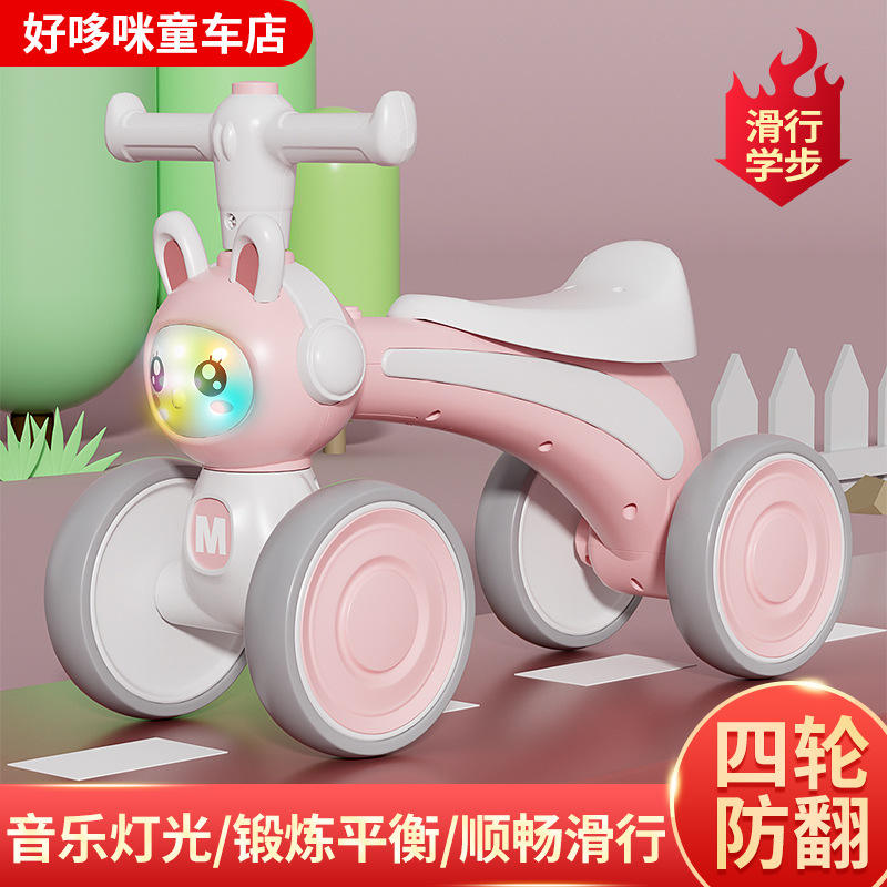 M Kids Four-wheel Balance Bike 12 Inch Plastic Wheels Safe For 1-3 Years Old Children Gliding Bike With Bunny Design