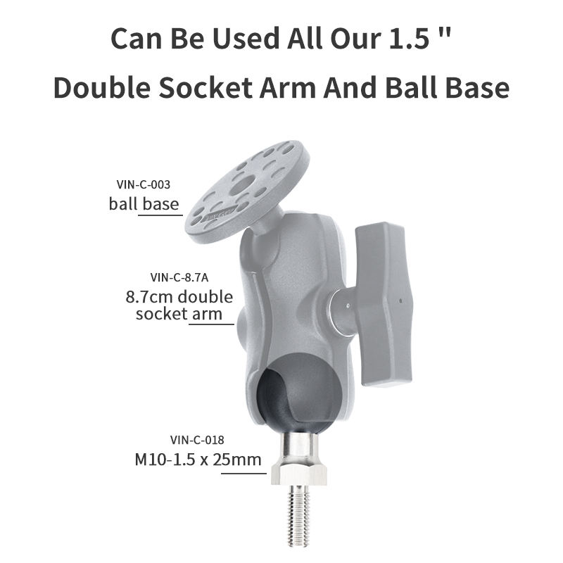 M10-1.5 X 25mm Threaded Stud-C Size Ball Head Bracket for Action Camera Mount VIN-C-018