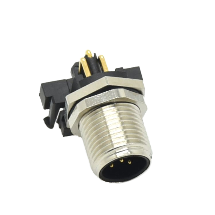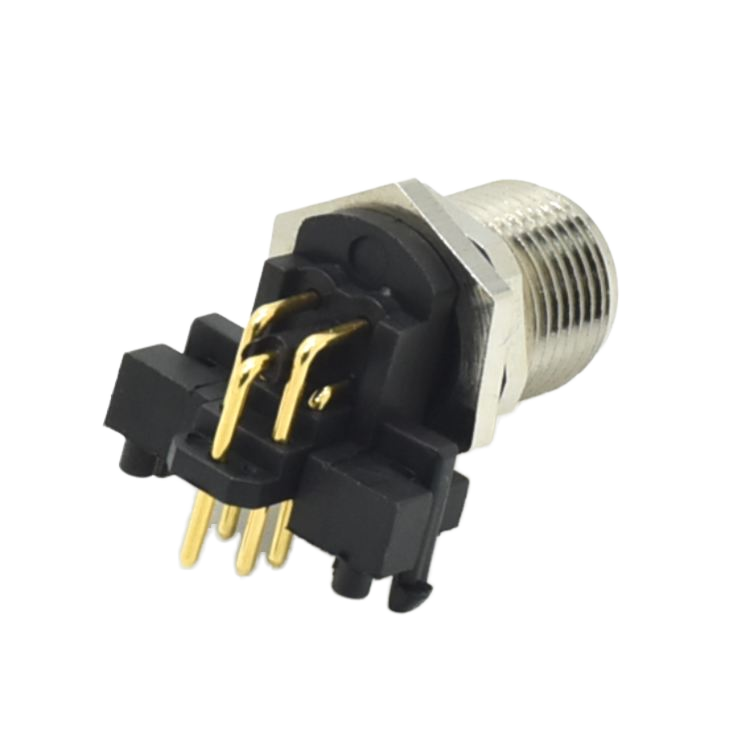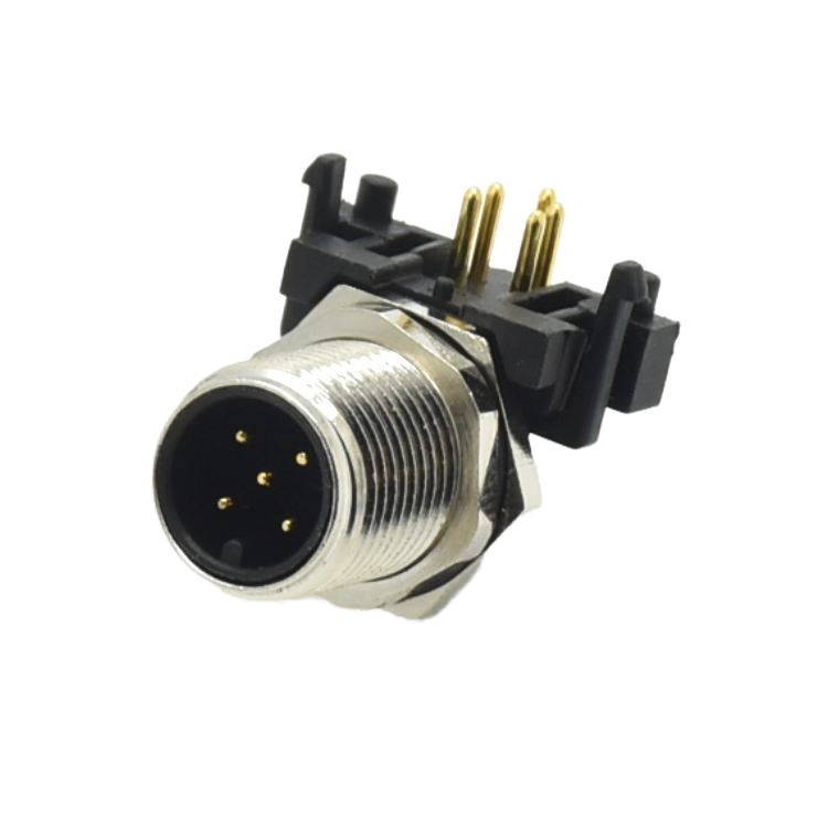 M12 5 Pin Industrial Waterproof Connector Angled Female Male Back Mount PCB Socket Bend Contact MaleScrew Metal Connector Angled