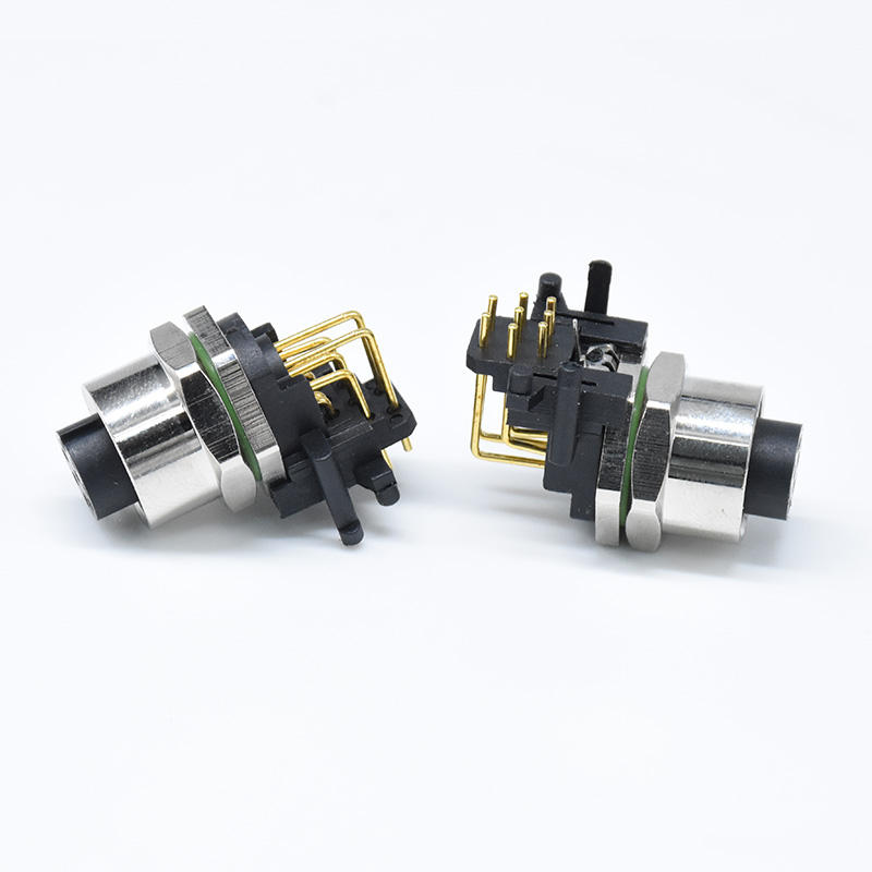 M12 8P PCB Right Angle Female Socket Panel Mount Connector Electrical Wire M12 a Code 8 Pin Connector