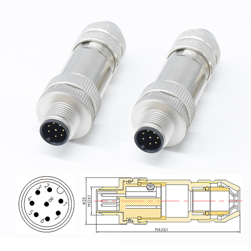 Item name:M12 8 Pin A Code Male Female Metal Field Assembly Plug