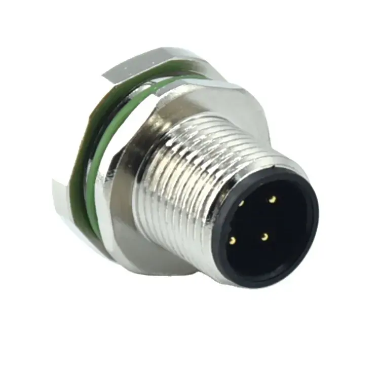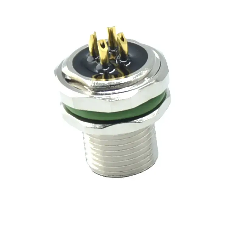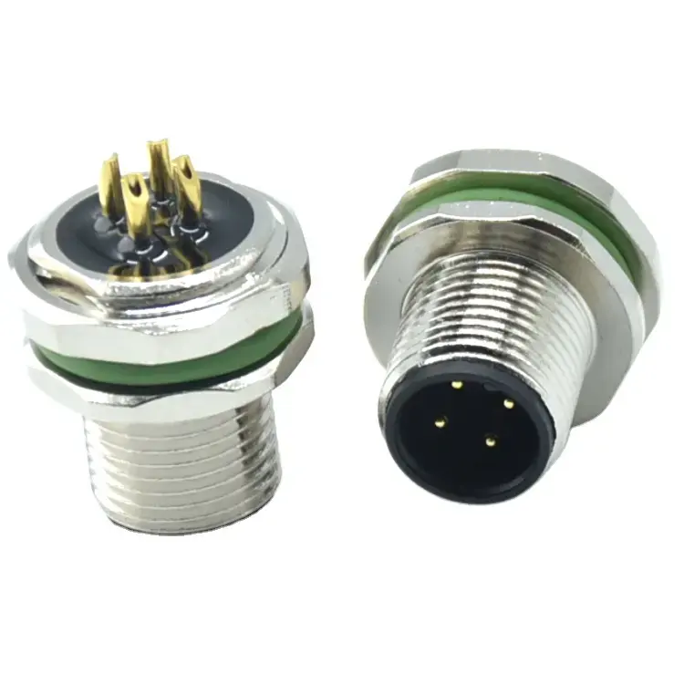 M12 connector rear Male fastened socket m12 panel mount connector 4 pin waterproof wire joint connectors