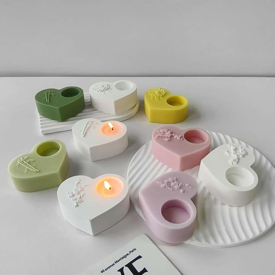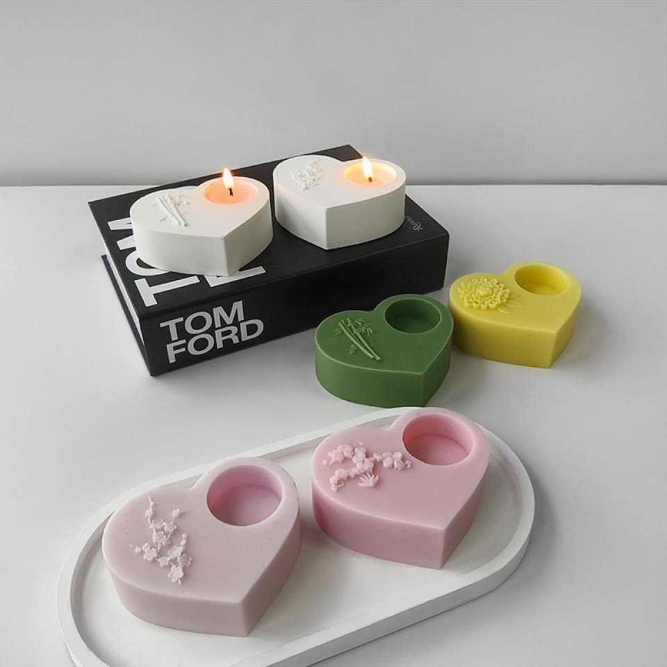 Love Heart Candle Holder Heart Shaped Candlestick Desktop Gypsum Candle Silicone Mold