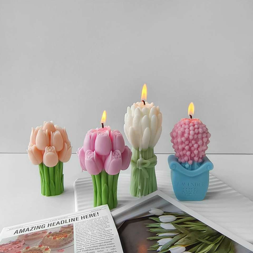 Tulip Bouquet Aromatherapy Candle Flowers Handmade Gypsum Resin Candle Silicone Mold