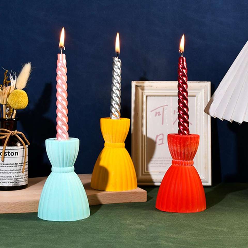 Striped Hourglass Candlestick Aromatherapy Candle Holder Gypsum Resin Candle Silicone Mold