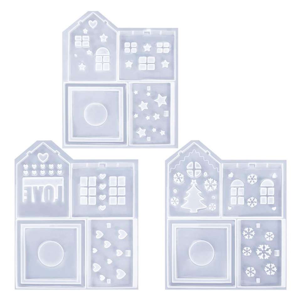 Christmas House Love Candle Holder House Small Night Lamp Model Gypsum Epoxy Resin Candle Silicone Mold