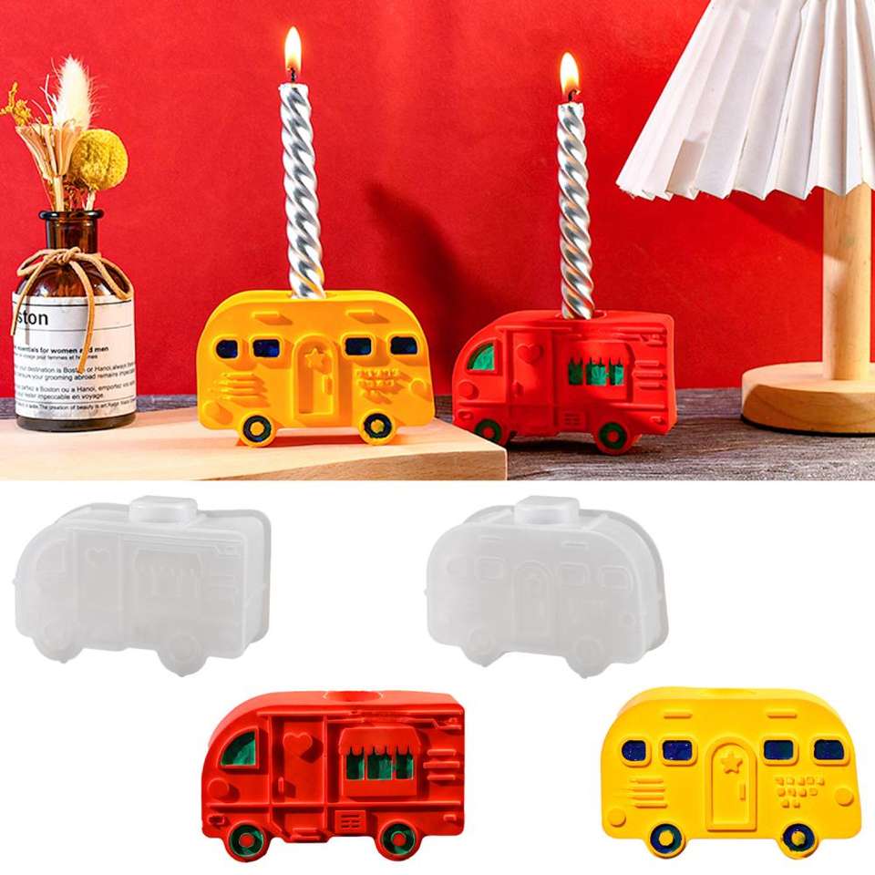 Car Bus Candlestick Aromatherapy Candle Holder Gypsum Resin Candle Silicone Mold