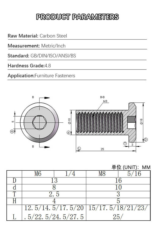 Grade:4.8/ 6.8/ 8.8/ 10.9/ 12.9