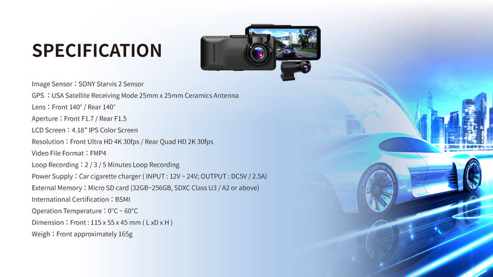 Night Vision, Build-in WiFi, App Control, Voice Interaction, Build-in GPSFunction