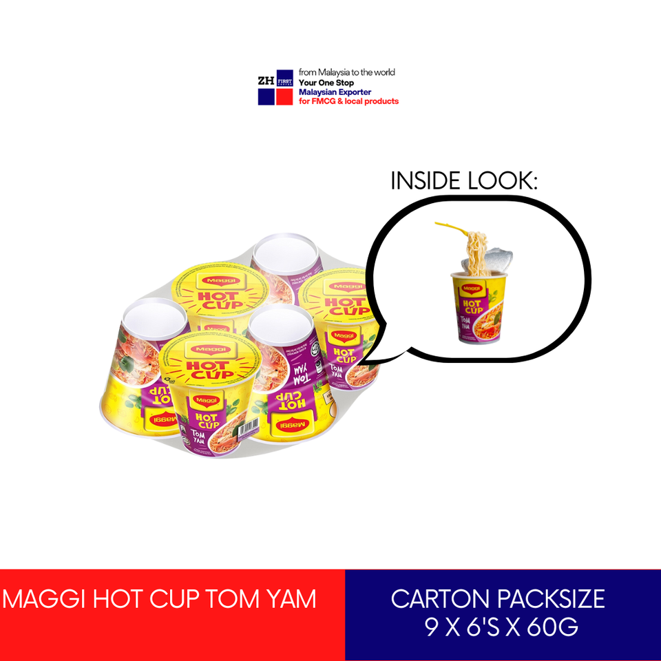 MAGG I Hot Cup Tom Yam 6x60g bundle yellow purple cup instant noodle soup spicy sour halal Malaysia directfactory wholesale