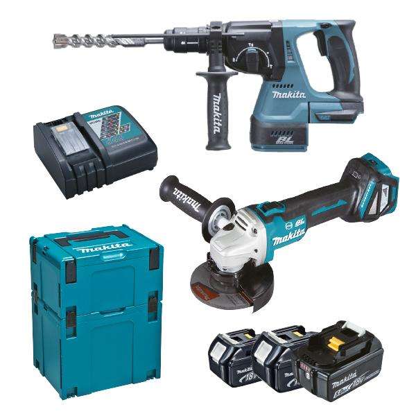 MAKITA - DLX2256TJ1 Set of hammer, angle grinder, 3 batteries 5.0Ah and charger - in 2 cases IMPACT DRIVERS AND CORDLESS DRILLS