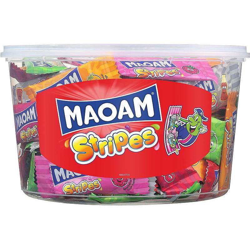 MAOAM Chewy Striped Candy 100 Pieces in Round Can Kosher Halal G.A.P Certified Mint Flavored Soft Lollipops in Bulk Packaging