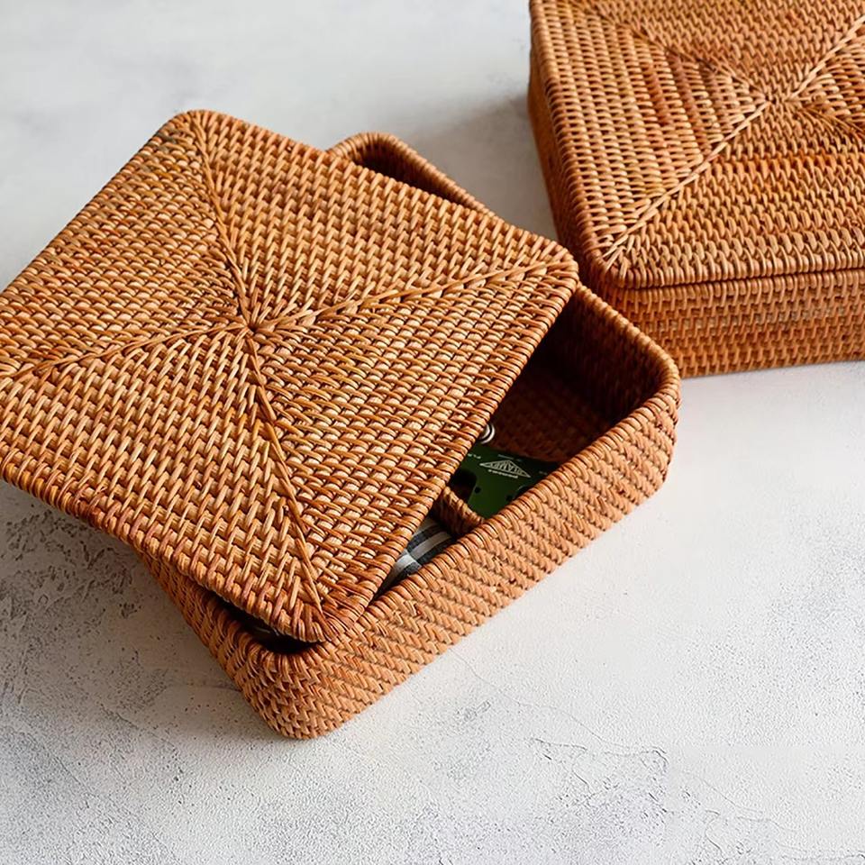 MARVELLOUS ! Rustic Style Wicker Rattan Basket With Lid Storage Basket with Cover, Rattan Basket for Storage