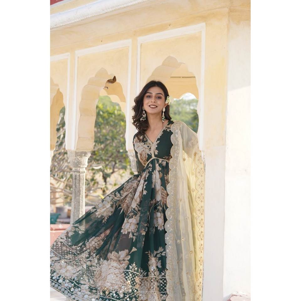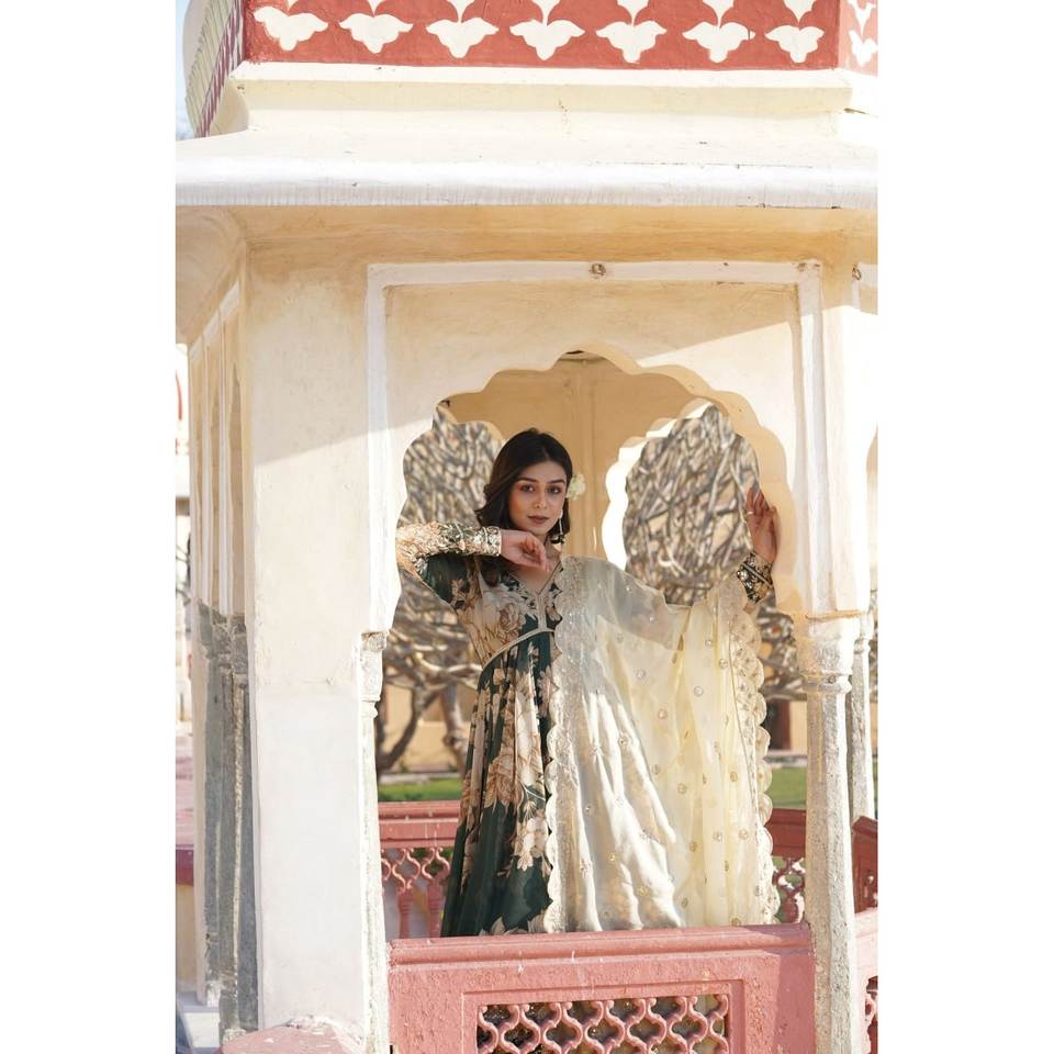 MASAKA Traditional Muslim Clothing & Accessories Set-Readymade Alia Cut Gown with Dupatta KKA-1086 Size XS [34]
