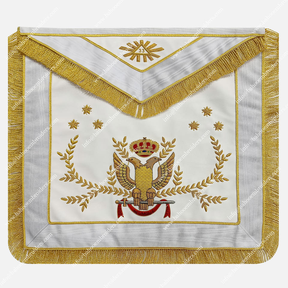 AASR 33rd Degree White Leather Apron Hand Embroidered