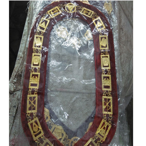 MASONIC REGALIA SHRINER NEW DRESS METAL CHAIN COLLAR RED VELVET Popular Design Economical Premium Masonic Regalia Chain Collar