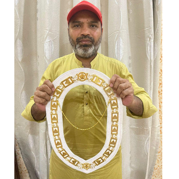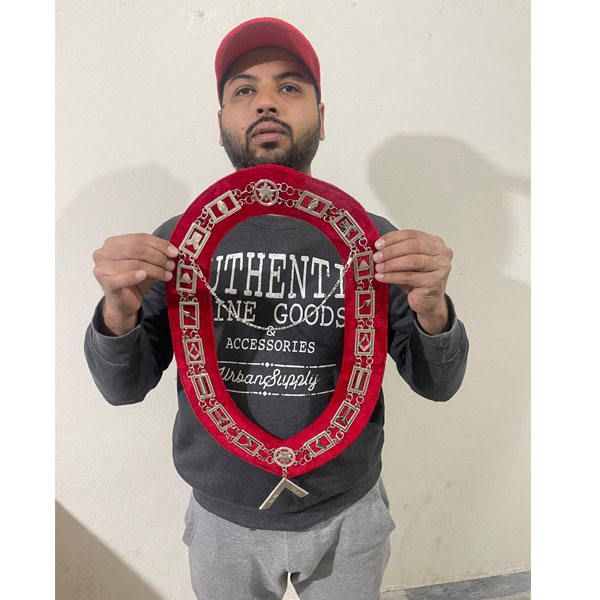 MASONIC SHRINER'S Chain Collar Golden on Red Velvet with Rhinestones Masonic Regalia Round Metal Freemason Collar for Worship